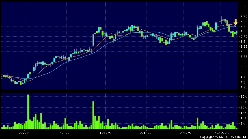 Disclaimer:The information, financial market data, quotes, charts, statistics and / or various technical analysis indicators are automatically generated based on the analyses and interpretations of publicly available information and should be used as references only at your own discretion. Such automatically generated content does not reflect the views or opinions of AASTOCKS.com Limited nor does AASTOCKS.com Limited make any guarantees to their accuracy, completeness, timeliness or correctness. You are advised to consult independent professional advice to verify pricing information or to obtain more detailed market information. Any uses of information or trades executed following the said automatically generated content are taken at your own risk for your own account.