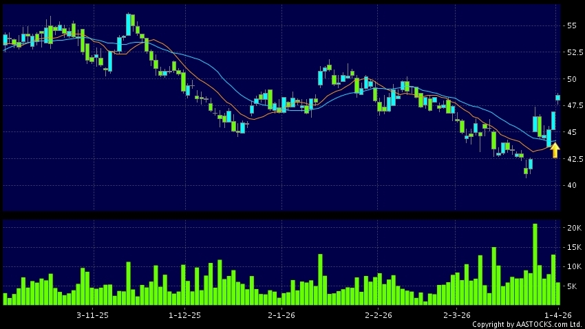 黄金交叉是一个利好讯号,指股价的短期移动平均线升穿长期移动平均线,例如50天线升穿250天线,在图表上构成交叉的形状。股价通常会上升形成一个上升趋势,技术走势向好。(港股报价延迟最少十五分钟。沽空资料截至 2026-04-01 16:25。)