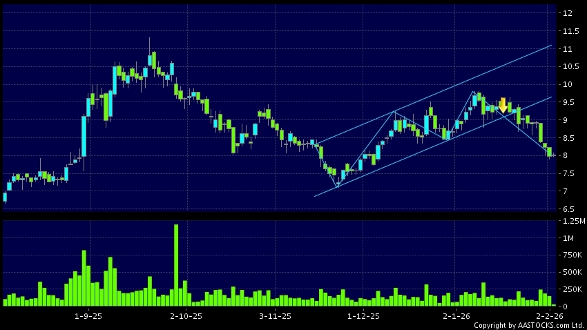 区域突破指股价在过去的一段时间只在一个范围在内活动,然後股价下跌作出突破,跌穿区域的底部,技术走势偏软。(港股报价延迟最少十五分钟。沽空资料截至 2026-02-05 16:25。)