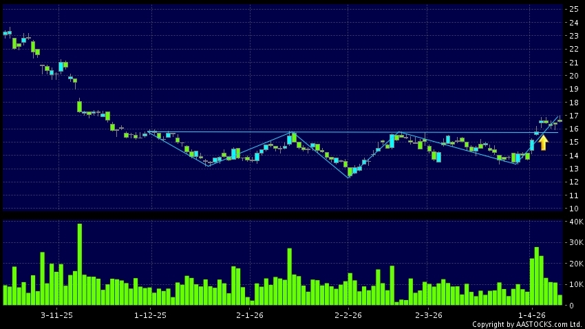 头肩底是典型的利好讯号,当股价升穿阻力线时,升势确认股价将持续上升,技术走势向好。(港股报价延迟最少十五分钟。沽空资料截至 2026-04-23 16:25。)