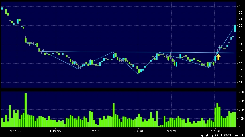 头肩底是典型的利好讯号,当股价升穿阻力线时,升势确认股价将持续上升,技术走势向好。(港股报价延迟最少十五分钟。沽空资料截至 2026-04-23 16:25。)