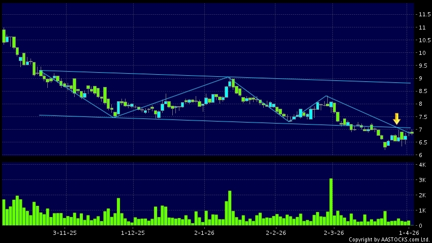 区域突破指股价在过去的一段时间只在一个范围在内活动,然後股价下跌作出突破,跌穿区域的底部,技术走势偏软。(港股报价延迟最少十五分钟。沽空资料截至 2026-04-02 12:25。)