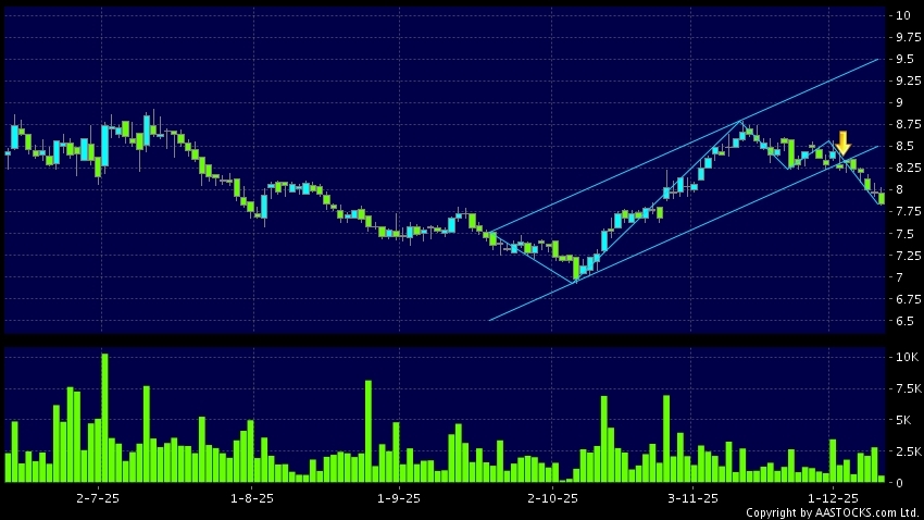 區域突破指股價在過去的一段時間只在一個範圍在內活動,然後股價下跌作出突破,跌穿區域的底部,技術走勢偏軟。(港股報價延遲最少十五分鐘。沽空資料截至 2025-12-12 16:25。)