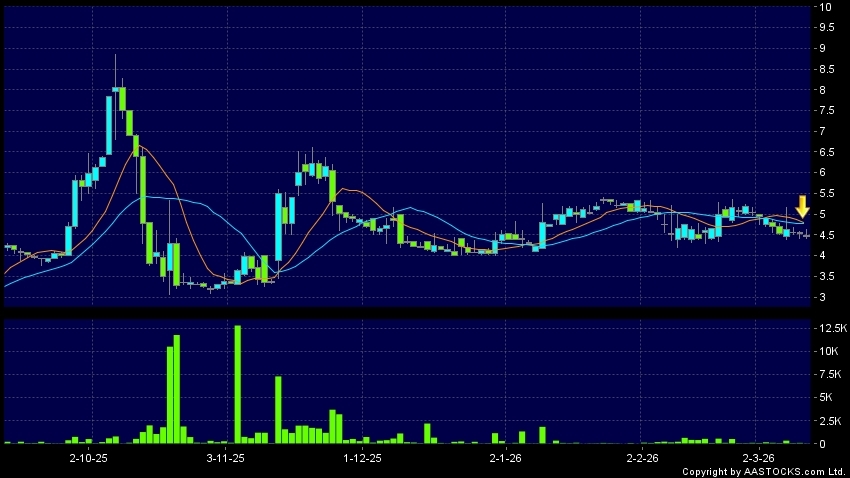 免責聲明:以上金融市場數據、報價、圖表 及/或各種技術分析指標乃根據公開資料分析和演釋自動生成的,僅作參考使用。此類自動生成的內容並不代表AASTOCKS.com Limited的立場。AASTOCKS.com Limited並不保證其準確性、完整性、實時性或者正確性。閣下應諮詢獨立專業意見,以核實定價資料或獲取更詳細的市場信息及須為所有跟隨此類自動生成的內容執行的交易或使用該內容負責。