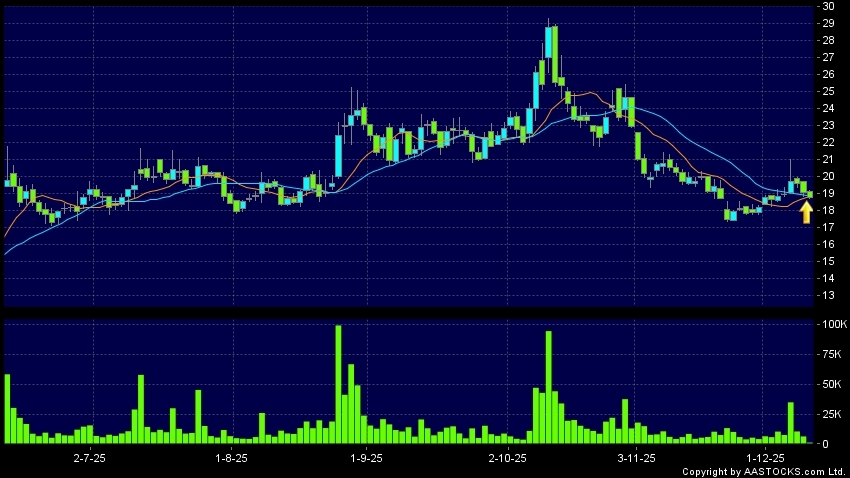 金力永磁(06680.HK) +0.360 (+1.933%) 沽空 $26.93萬; 比率 0.357% 10天移動平均線升穿20天移動平均線,出現黃金交叉。現價報18.920,下跌0.682%,成交量1.37百萬股,成交額2.58千萬。