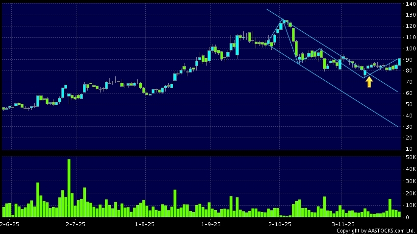 區域突破指股價在過去的一段時間只在一個範圍在內活動,然後股價上升作出突破,升穿區域的頂部,技術走勢向好。(港股報價延遲最少十五分鐘。沽空資料截至 2025-12-12 16:25。)