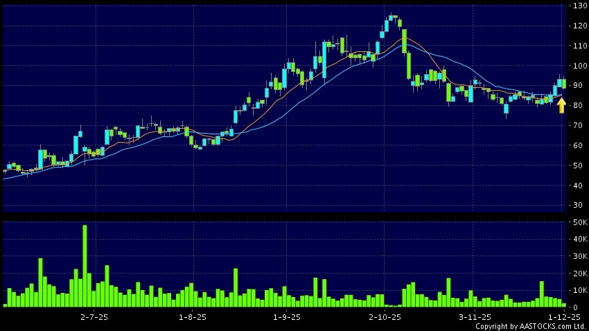 黃金交叉是一個利好訊號,指股價的短期移動平均線升穿長期移動平均線,例如50天線升穿250天線,在圖表上構成交叉的形狀。股價通常會上升形成一個上升趨勢,技術走勢向好。(港股報價延遲最少十五分鐘。沽空資料截至 2025-12-12 16:25。)